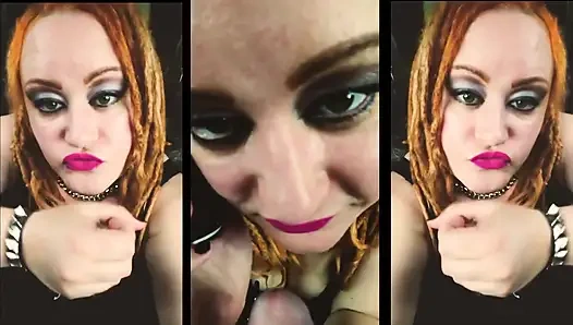 Talking to her boyfriend on the phone while she sucks off his cute buddy